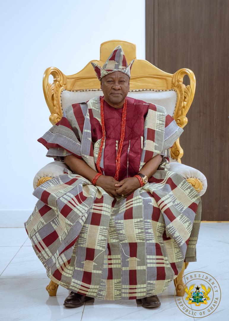 President John Dramani Mahama has been installed as Aare Atayeto Oodua of the Source by the Ooni of Ife, His Imperial Majesty Oba Adeyeye Enitan Babatunde Ogunwusi, Ojaja II, at a grand ceremony in Ile-Ife, Osun State, Nigeria.